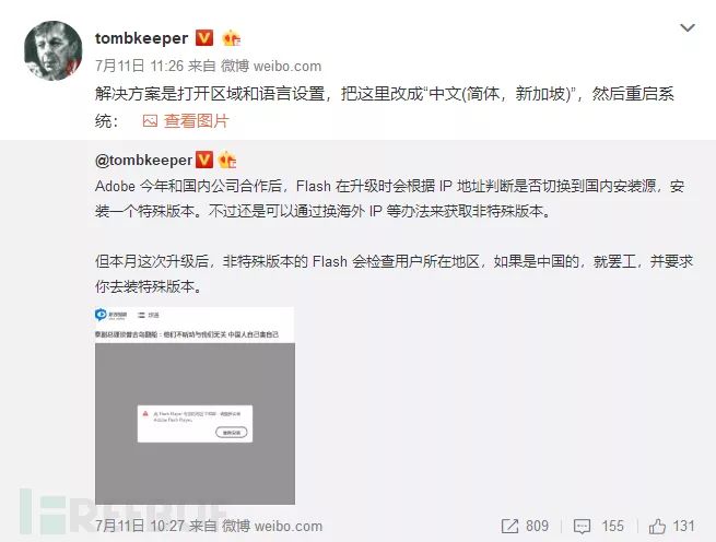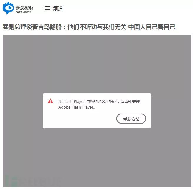 而在这项合作达成之后,Flash Player加入了地区验证机制,安装海外版Flash 的用户在升级过程中如果检测到地区位于国内,则会提示“地区不相容,请重新安装”,而原本Flash Player的插件更新地址https://get.adobe.com/cn/flashplayer ,会自动跳转到:https://www.flash.cn/。