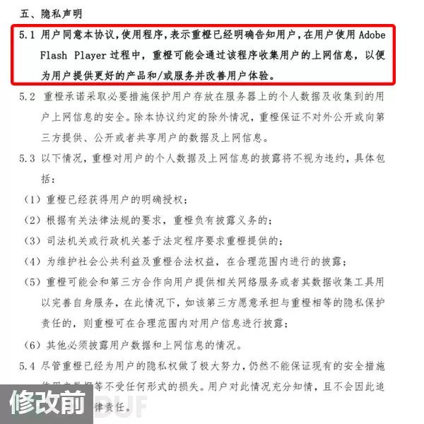 与Adobe在Flash player上达成合作的是重庆的一家名为重橙网络的公司。在隐私协议修改之后,精简了许多关于细节问题,只强调了在不侵犯用户隐私的前提下,可能会记录用户使用Flash Play的记录和相关数据,同时也去掉了关于将信息披露给第三方的细则。