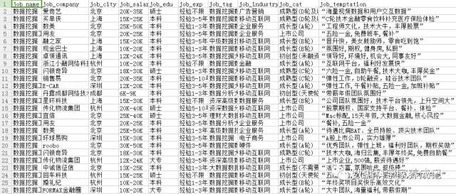 随着大数据时代的到来和数据的市场价值得到认可,数据分析师、进阶一点的还有数据挖掘工程师、甚至是金字塔顶尖的数据科学家,这些作为21世纪最性感的职业已成功吸引无数像笔者这样的热血小青年,阿里的一句“开启AI时代”的口号就足以让我等激动的准备把此身奉献给高大上的数据科学行业。除去像计算机、数学和统计学这些科班出身的童鞋,想要转行投身数据分析的其他行业人士也绝不在少数。但数据分析到底是什么、想要成为一名数据行业的从业者又要具备哪些素质,恐怕这才是大家真正需要关注的焦点。笔者花了一些时间,从数据采集到清洗、分析,从可视化到数据的深度挖掘,一整套数据分析处理流程给大家展示一下目前国内关于数据行业的招聘信息到底有些什么。