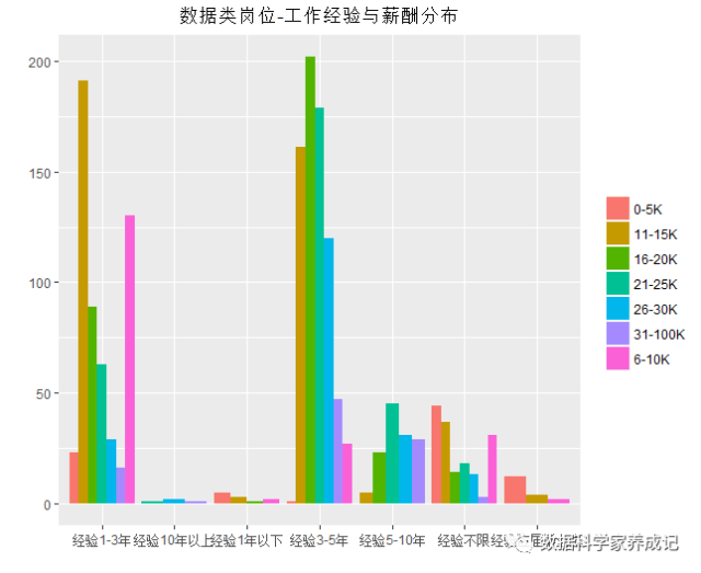 ggtitle("数据类岗位-工作经验与薪酬分布") +