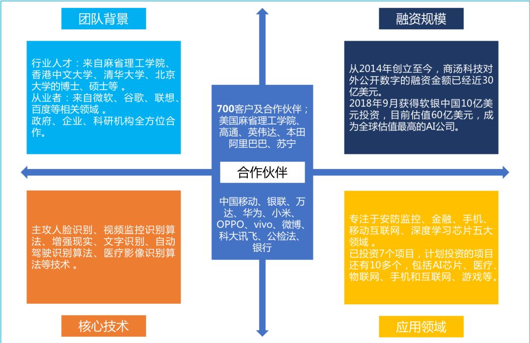 商汤科技成立于2014年,主要业务是计算机视觉技术以及深度学习算法,是计算机视觉和深度学习领域的算法提供商。2018年9月初,软银中国的10亿美元投资,将商汤估值抬至60亿美元。