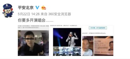 学友哥的演唱会上经常会上演现场抓逃犯的戏码,前一秒逃犯还在台上为偶像加油呐喊,后一秒几名民警在6万观众中将他找出来带离现场。洛阳警方更是表示已经严阵以待,北京警方也发文表示:你要多开演唱会……最终,警方在张学友的演唱会上抓到数个逃犯。这也让后续开演唱会的歌手感到些许压力,不知道没“抓到”逃犯的会不会有点不好意思。