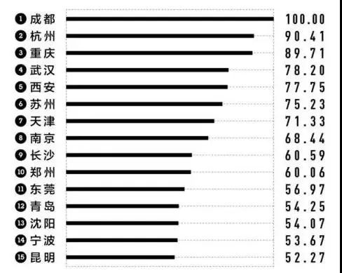 但总体而言,成都的魅力还是相当之可观,2016 年,成都跻身成国家中心城市。最近,第一财经发布《城市商业魅力排行榜》,成都连续四年名列新一线城市之首。