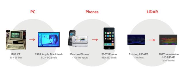 此外,300 线的分辨率才能让激光雷达掌握图像级信息。从电脑到手机,都是从原始的文本信息向图像级信息发展,也掀起了整个产业的从 0 到 1 的飞跃性革命。对于激光雷达来说,亦是如此。