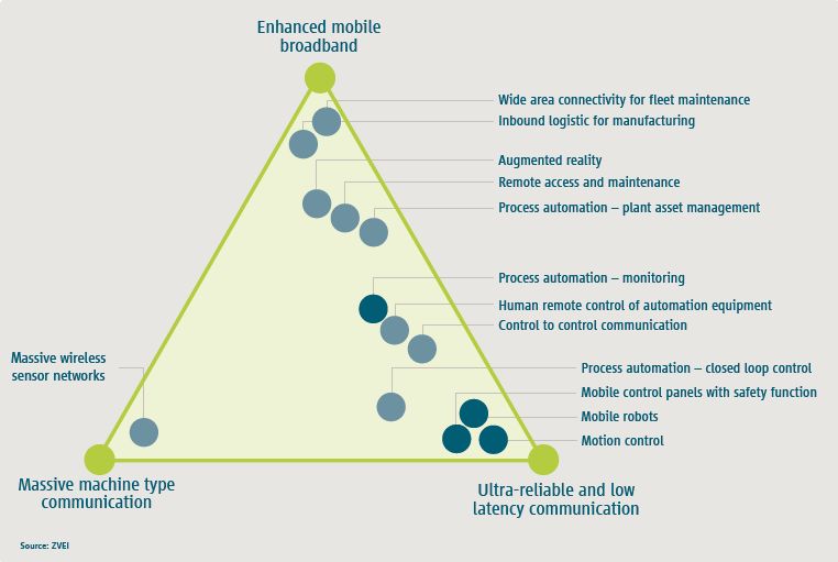 较之有线通讯系统来说,无线系统显然能快速突破技术和经济上的限制。未来会在工业生产中运用数量巨大的低成本传感器和执行器,除了使用有效的无线系统,别无它法。蓝牙和无线局域网都在开发低成本的结构,但至今为止仅有非常有限的机制来解决抗干扰、信息安全和响应时间等问题。单一的无线工业解决方案局限于很少的频带,由于只能容纳数量不多的传感器和执行器,不太可能有很好的经济效应。因此,可能仍然需要5至10年,5G才会在工业应用中起到巨大作用。