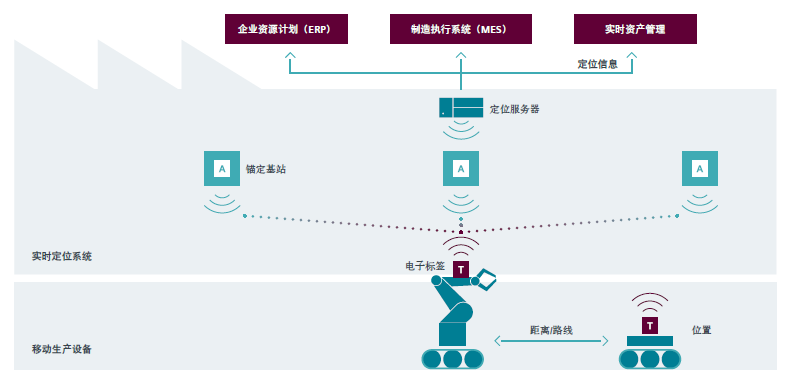 在未来智能工厂中,诸如 AGV、移动机器人等各种生产物料将与人力、机器设备和系统协同工作,机器或机器人的位置会随时变动。因此,精确提供其在工厂中的位置信息,对于自我引导的高效工作流程来说至关重要。