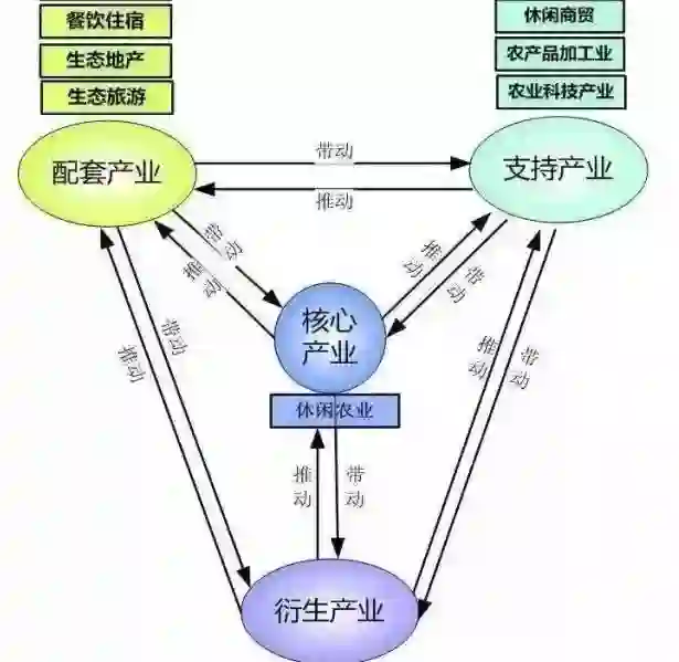 2.支持产业是指直接支持休闲农产品的研发、加工、推介和促销的企业群及金融、媒体等企业。
