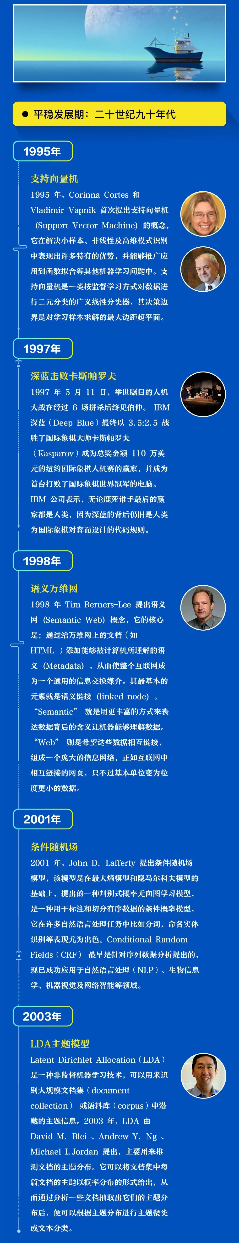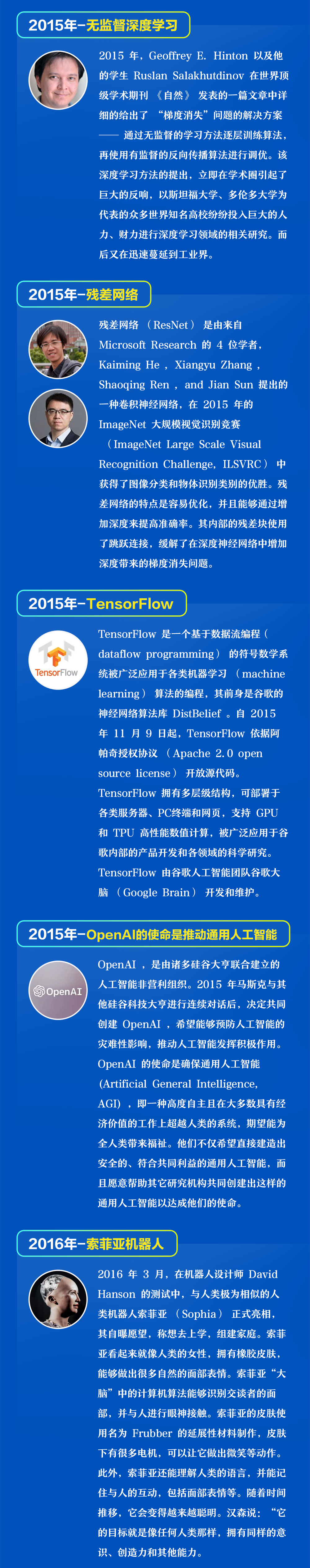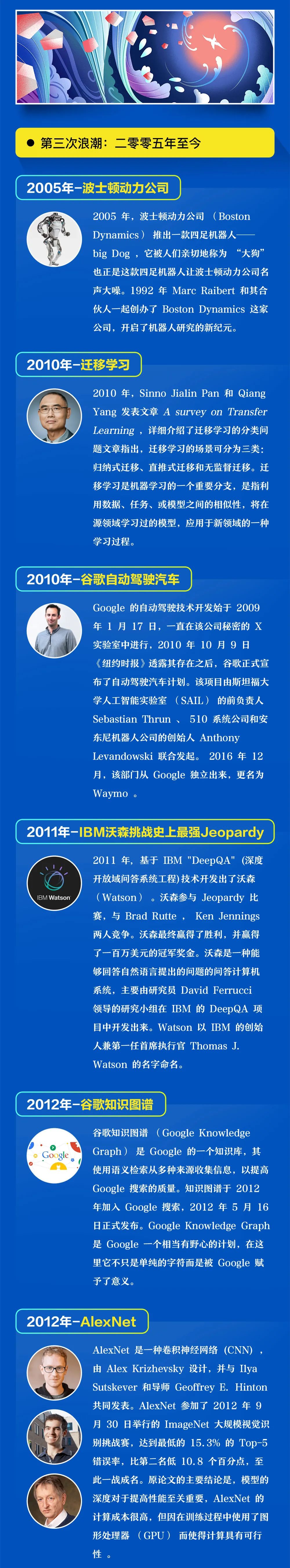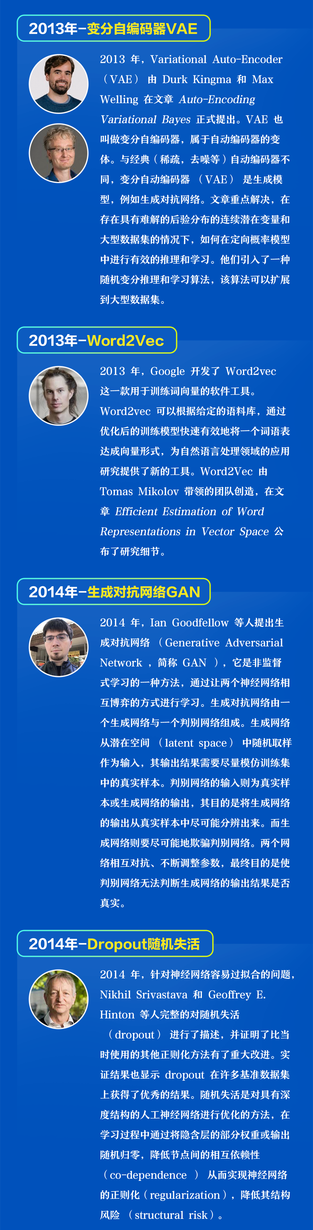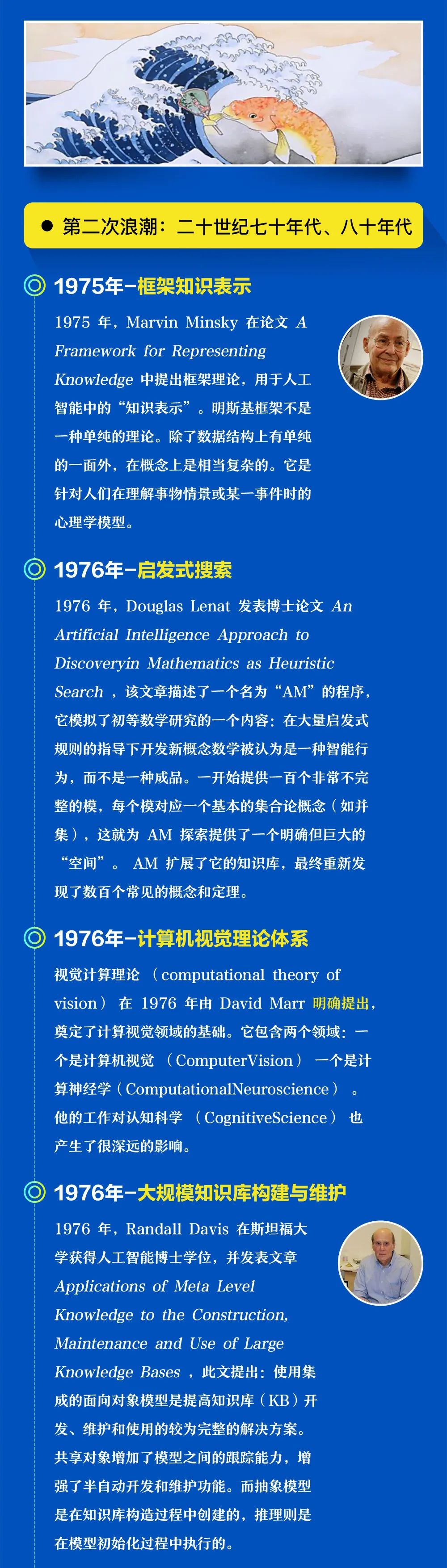 人工智能将融入每个人的生活,变得无处不在。虽然任何技术的发展都会有高峰和低谷,在漫漫人工智能发展长河中,应保持乐观也保留理智。我们相信未来人工智能必将发挥长处,造福人类生活,促进经济发展。 最后,学术头条向那些致力于人工智能发展的一代又一代创新者们致敬。科技发展的背后离不开推动创新的人们,我们也期待更多年轻人,投身到科技改变世界的浪潮中。 参考文献: 1. Jie Tang, Jing Zhang, Limin Yao, Juanzi Li, Li Zhang, and Zhong Su. ArnetMiner: Extraction and Mining of Academic Social Networks. (https://www.aminer.cn/pub/53e9a5afb7602d9702edacce/arnetminer-extraction-and-mining-of-academic-social-networks) In Proceedings of the Fourteenth ACM SIGKDD International Conference on Knowledge Discovery and Data Mining (SIGKDD'2008). pp.990-998.2. C. E. Shannon, "XXII. Programming a computer for playing chess," Philosophical magazine, vol. 41, no. 314, pp. 256–275, 1950.3. AM Turing. Solvable and Unsolvable Problems[J]. B.j.copeland, 1955, 31.4. Minsky M . A Framwork for Representing Knowledge[J]. The Psychology of computer vision, 1975.5. Weizenbaum, Joseph. ELIZA—A Computer Program For the Study of Natural Language Communication Between Man And Machine[J]. Communications of the Acm, 1983, 9(1):36-45.6. Kingma D P , Welling M . Auto-Encoding Variational Bayes[J]. 2014.7. Devlin J , Chang M W , Lee K , et al. BERT: Pre-training of Deep Bidirectional Transformers for Language Understanding[J]. 2018.8. Haenlein M, Kaplan A. A brief history of artificial intelligence: On the past, present, and future of artificial intelligence[J]. California management review, 2019, 61(4): 5-14.9. 史忠植. 高级人工智能[M]. 科学出版社, 2011.10. 顾险峰. 人工智能的历史回顾和发展现状[J]. 自然杂志, 2016, 38(003):157-166.11. 尼克. 《人工智能简史》[J]. 科普创作, 2018.12. 陈宗周. 《AI传奇-人工智能通俗史》[J]. 科普创作, 2018.13. https://www.aminer.cn/ai-history14. https://tech.sina.com.cn/roll/2020-07-16/doc-iivhvpwx5735932.shtml15. http://www.samr.gov.cn/samrgkml/nsjg/bzjss/202008/t20200805_320544.html16. https://en.wikipedia.org/wiki/Artificial_intelligence17. https://en.wikipedia.org/wiki/History_of_artificial_intelligence18. http://sitn.hms.harvard.edu/flash/2017/history-artificial-intelligence/19.https://www.livescience.com/47544-history-of-ai-artificial-intelligence-infographic.html(https://www.livescience.com/47544-history-of-a-i-artificial-intelligence-infographic.html)20. http://courses.cs.washington.edu/courses/csep590/06au/projects/history-ai.pdf21. https://www.aaai.org/ojs/index.php/aimagazine/article/view/1904/180222.https://www.technologyreview.com/s/602830/the-future-of-artificial-intelligence-and-cybernetics/23.http://www.bbc.com/future/story/20170307-the-ethical-challenge-facing-artificial-intelligence24.https://qz.com/1307091/the-inside-story-of-how-ai-got-good-enough-to-dominate-silicon-valley/25. https://zh.wikipedia.org/wiki/AlexNet#cite_note-quartz-126. http://www.dpkingma.com/27. https://en.wikipedia.org/wiki/Autoencoder28. https://en.wikipedia.org/wiki/Generative_adversarial_network29. https://en.wikipedia.org/wiki/Ian_Goodfellow30. https://poloclub.github.io/ganlab/31.https://www.technologyreview.com/2018/02/21/145289/the-ganfather-the-man-whos-given-machines-the-gift-of-imagination/32. https://www.jianshu.com/p/efda7876fe1c33. http://blog.itpub.net/29829936/viewspace-2217861/34. http://www.techwalker.com/2017/1225/3102138.shtml35. https://zhuanlan.zhihu.com/p/2035074336. https://blog.csdn.net/cao812755156/java/article/details/8959841037. https://blog.csdn.net/weixin_43624538/article/details/8504969938. http://kaiminghe.com/39.https://www.jiqizhixin.com/graph/technologies/1c91194a-1732-4fb3-90c9-e0135c69027e40. https://www.openai.com/41.Shortliffe EH, and Buchanan BG (1975). "A model of inexact reasoning in medicine". Mathematical Biosciences. 23 (3–4): 351–379. doi:10.1016/0025-5564(75)90047-4. 本文根据文献资料整理而成,时间仓促难免有误,如您有任何建议,欢迎联系:aiopen@aminer.cn。感谢您的关注与支持。 总策划:毛潇 文字编辑:赵雅琦、刘艺馨 图片编辑:刘静 排版:赵辰霞 编审:王新凯感谢所有对本文有贡献的专家技术顾问。 想要了解更多学术进展、前沿科技资讯,参与学术头条每日话题讨论,可以扫描二维码或搜索 AMiner308 添加学术君微信,对学术君说: “我想进读者群”, 即可进入读者群,不定期发福利~ 点击阅读原文,查看更多精彩! 喜欢本篇内容,请分享、点赞、在看