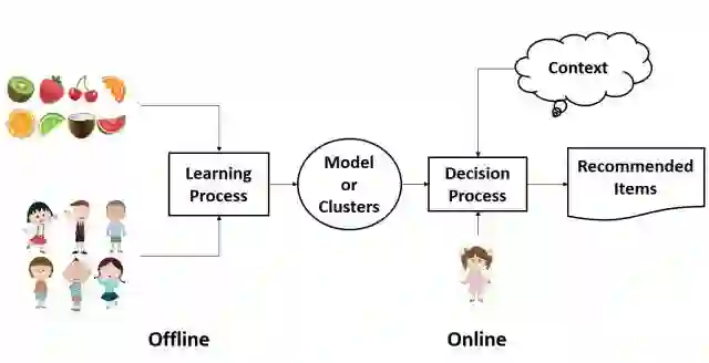 尽管不同的网站使用不同的推荐系统,但是总的来说,几乎所有的推荐系统的结构都是类似的,都由线上和线下两部分组成。线下部分包括后台的日志系统和推荐算法系统,线上部分就是我们看到的前台页面展示。线下部分通过学习用户资料和行为日志建立模型,在新的上下文背景之下,计算相应的推荐内容,呈现于线上页面中。
