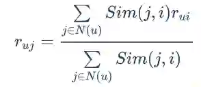 基于用户的协同过滤子引擎,通过下面的公式来计算用户对物品的喜好程度: