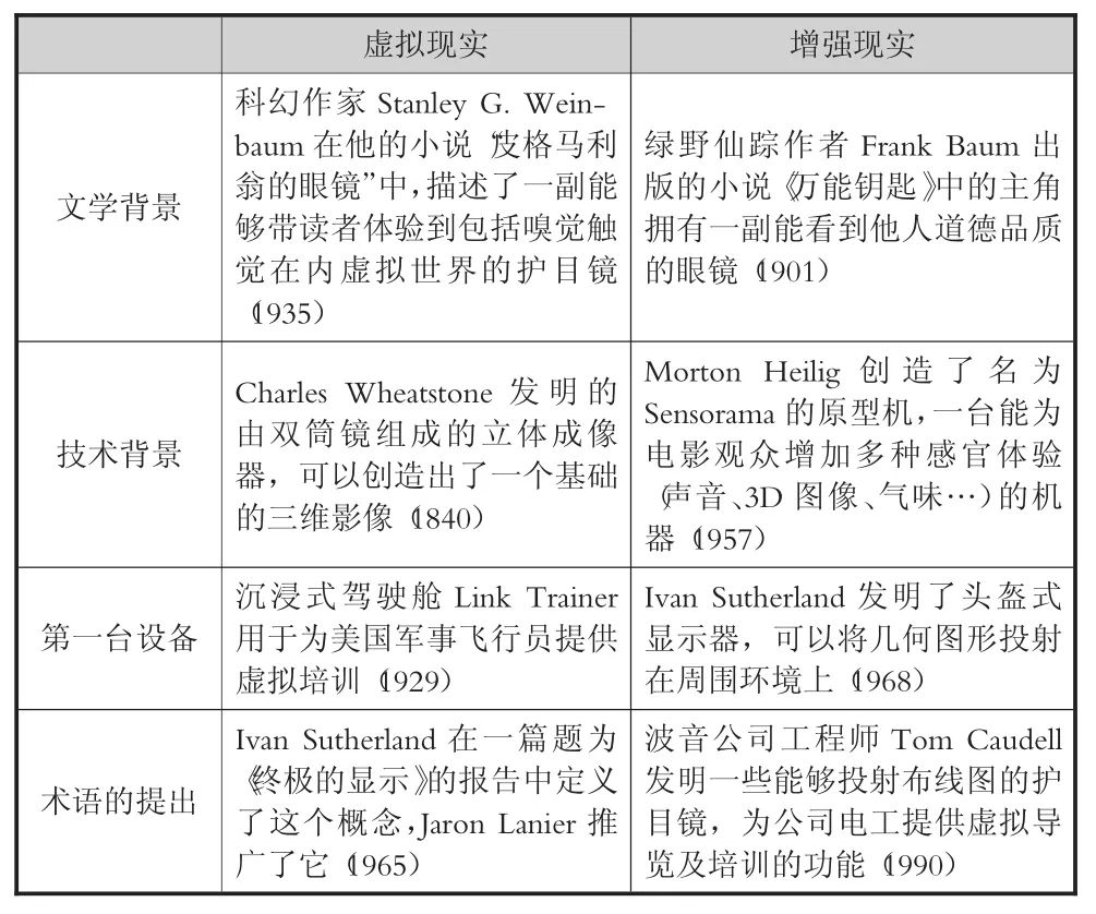 表1所展示的为虚拟现实、增强现实技术发展的历史关键节点,这两种沉浸式技术从文学构想到现今流行于大众,经历了百年的发展史。我们从历史发展的维度可以看出,虚拟现实侧重于对现实情境的仿真、模拟;增强现实更注重利用技术延伸人类对于现实环境的感知,来打破现实的“局限”。因此,准确认识两种技术的发展历程,是构建扩展现实技术概念的必经之路。