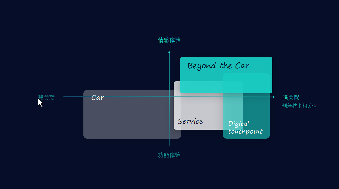 汽车以外的生活(Beyond the car):用户买了我们的车,就加入了一个愉快俱乐部的门票。哪怕你一年只开我们的车1000公里,也愿意拥有我们的车。