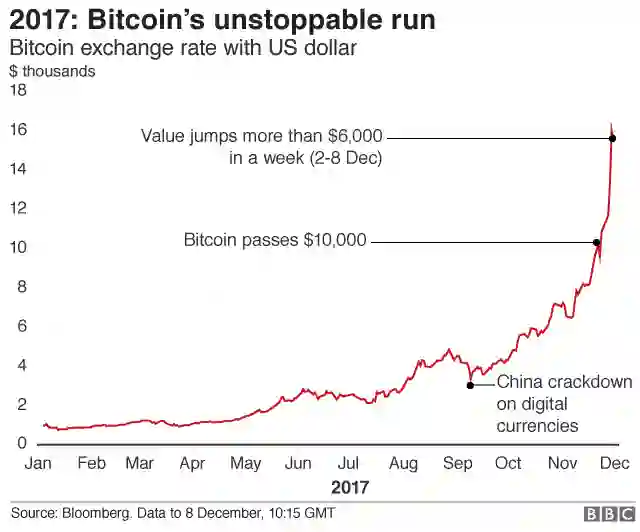 在 12 月 17 日,在有些比特币交易市场,价格突破 20,000 美元大关!!!