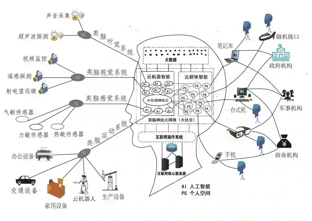 互联网类脑结构的形成也对人类社会的科技,产业,经济、军事,城市建设等领域产生着深远影响。