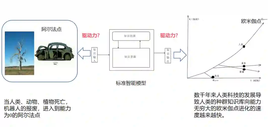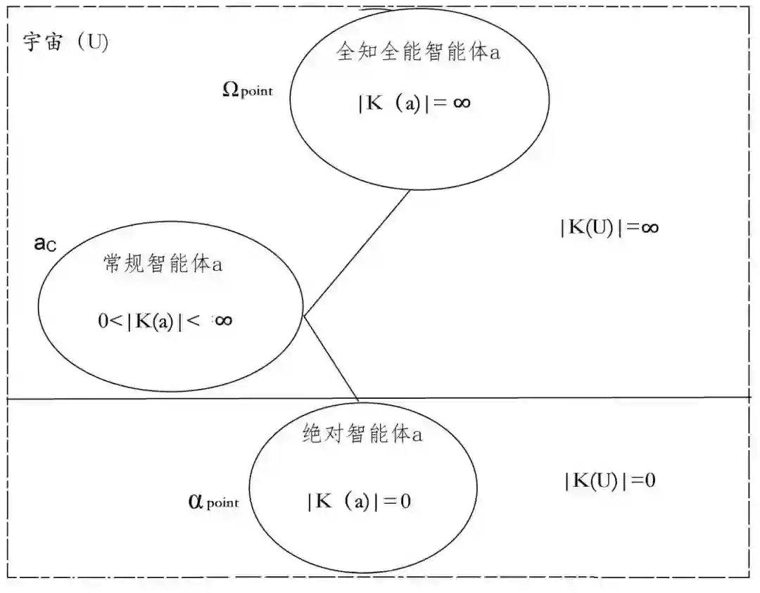 智能对于智能体的意义就是尽量脱离绝对 0 智能体状态(α point )并向全知全能智能体(Ω point ) 进化。