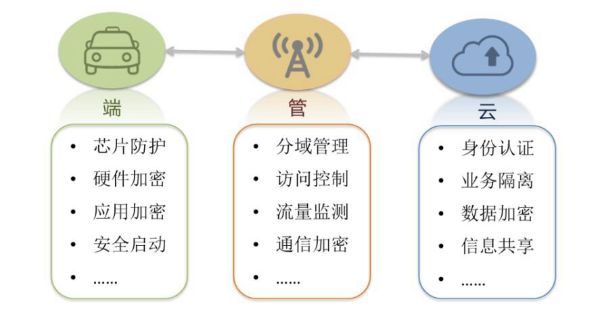 管:包括从车机、T-box到后台的通讯,App到后台的通讯等;其中V2X是车联网通信的关键技术,对于不可信节点的检测、隔离以及处罚都缺乏相应的机制;