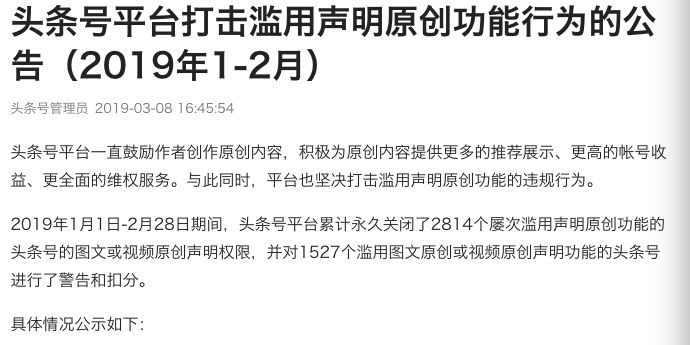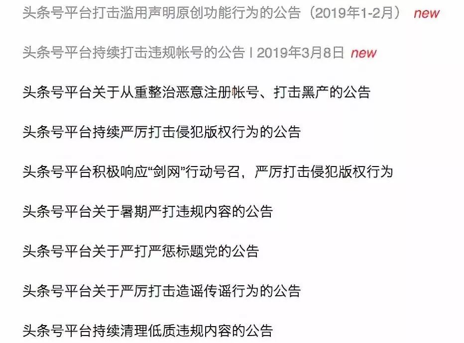 头条早年和微信一样,充斥大量标题党赚流量的现象。后来头条在内容上面被国家监管,作出了重大调整改变,如今对标题党的打击非常严重,几乎隔几天就会出现公示。