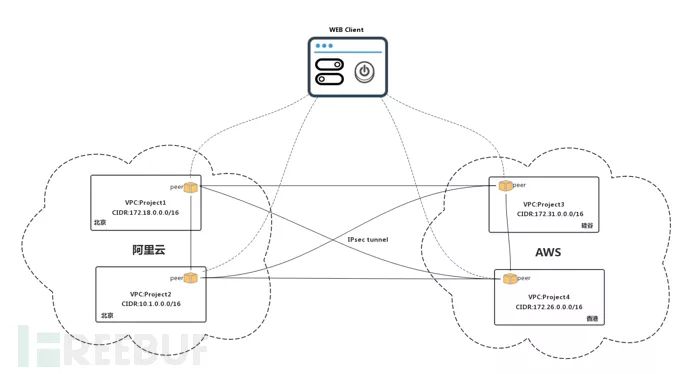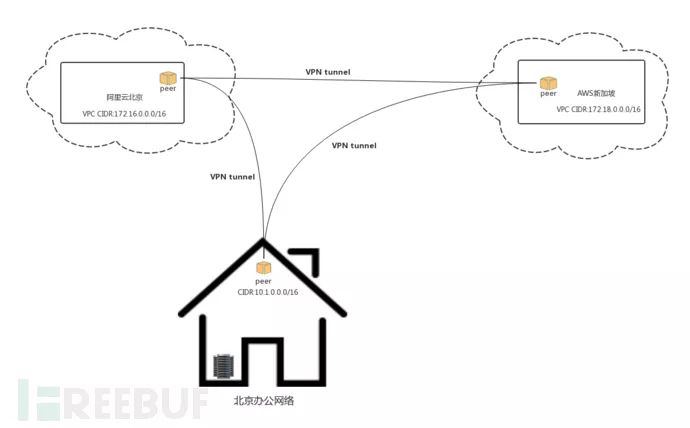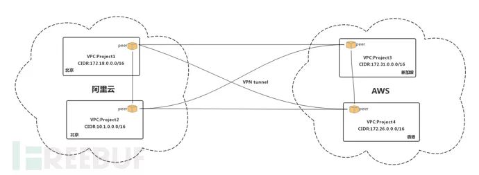 首先是VPC的互通。例如,将阿里云北京的VPC资源接入AWS新加坡的VPC。通常我们使用VPN软件解决,但繁琐的CLI和不同云服务商不同工作流的部署方法,会造成在基础设施上花费太多的精力。
