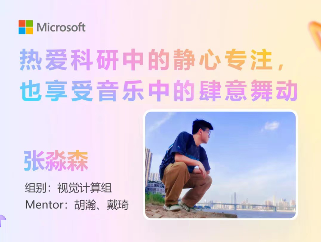2021年8月,东南大学人工智能专业的张淼森入选了微软亚洲研究院与东南大学的联合培养博士生项目。他说,这满足了他“进入有科研活力的研究院,靠实力去拼末来〞的心愿。他也正式开启了自己在研究院的实习。科研中的他专注且上进:每天早上9点到公司,吃完早餐开始写代码跑实验,下午会打印论文找个安静的咖啡厅阅读,这是淼森一天的工作日常。下班后,充满活力、热爱街舞是淼森的另一个标签。他从高三开始学习街舞,到现在已经4年了。