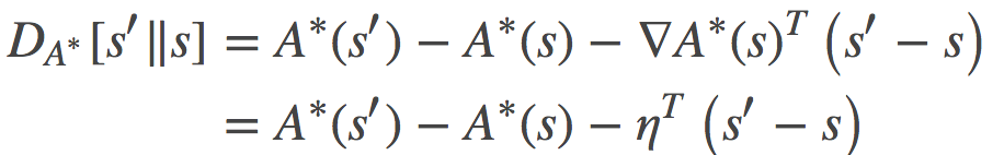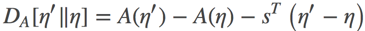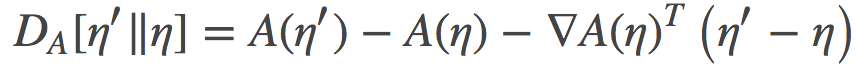 其中是log分割函数。由于A是一个关于η的凸函数, 我们就可以在以(凸)log分割函数A诱导的自然参数η作为坐标系统来定义 Bregman 散度: