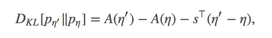 为了证明这一点, 我们可以简单的使用如下公式来计算:分别用自然参数η和η′代表的指数分布族之间的KL散度