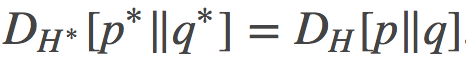 其中, <>表示内积。我用这里用这个符号来表示而不是矢量积的形式,目的是为了强调p和q可能是函数, 也可能是概率分布, 而并不一定只会是有限维向量。在后文中, 我会将其切换为通常的向量表示法。