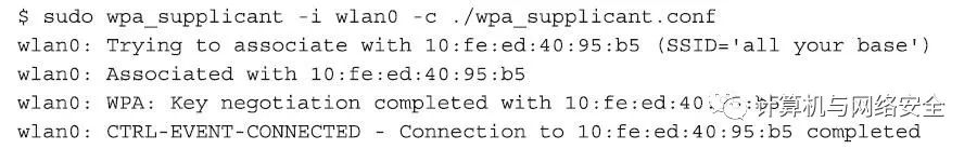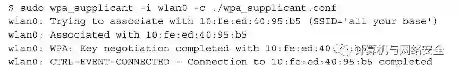 下一步,运行wpa_supplicant程序,该程序将关联并认证我们的无线网卡。