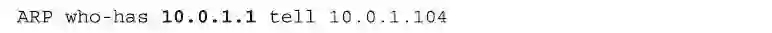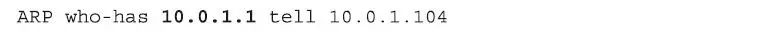 上面的ARP“who-has”数据包中,是假设有一个IP地址为10.0.1.104的主机以广播(broadcast)的方式发出一个“地址解析协议”ARP数据包,数据包的内容解读为“谁有10.0.1.1这个IP的MAC地址,请告诉10.0.1.104这台主机”。正如您想象的那样,在接收到这样的这个广播信息以后,路由器(router)将会回应这台主机。