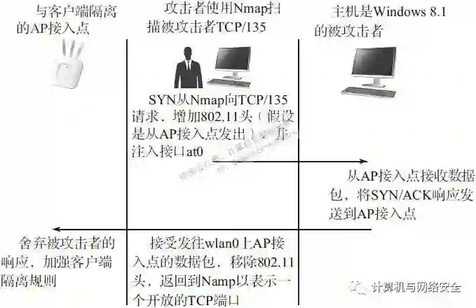 airtun-ng所提供的接口给了我们足够的可靠性,以便我们进行端口扫描(port-scan),而且该软件还可以去掉Nmap软件的数字指纹(fingerprint)。