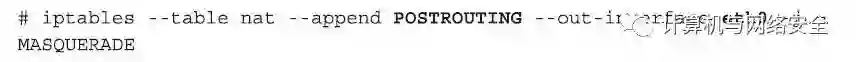 这个时候,我们还需要再添加一个规则,那就是让所有从有线网络接口eth0发出的数据,进行一个“网络地址转换”(Network Address Translation,NAT)转换。从技术的角度来说,这个规则不是必需的,我们可以没有这个规则,之所以要做这一个规则的原因是:如果不这样做,那些通过我们的AP接入点的客户端,其向互联网发送的各种HTTP请求的数据包的IP地址就是这些客户端的IP地址,这时我们AP接入点只起到了HTTP请求的“代理”(proxy)服务器的作用。而如果做了NAT转换,那么所有客户端向互联网发送的各种HTTP请求的数据包的IP地址都转换成了本AP接入点(或者说这个NAT转换服务器)的IP地址,这样从外面看起来所有通信数据的IP地址很一致。