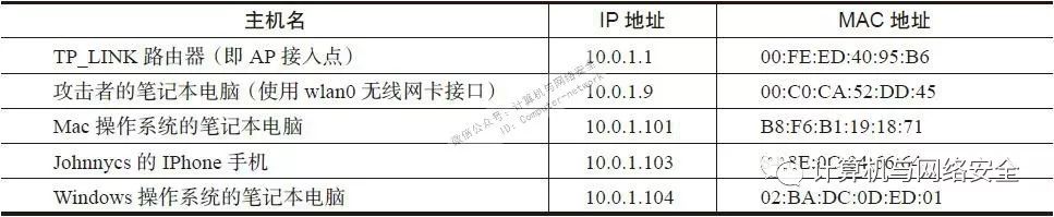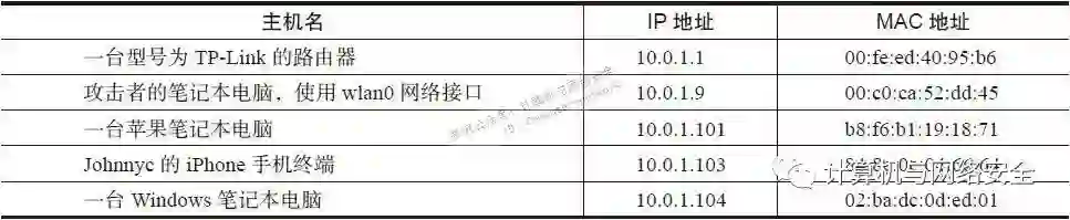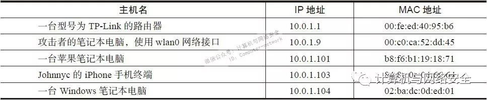 另一种通过在捕获网上的数据包,以及发送给目标客户端,进而实施欺骗的技术,叫作“ARP欺骗”(ARP spoofing),其中的ARP指的是“地址解析协议”(Address Resolution Protocol),是一种用于在本地子网上,将第4版IP地址(即IPv4)转换为MAC地址的转换协议。早期的主机名和IP地址之间的映射关系是如表2所示的关系重建(re-create)的。