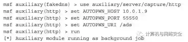如果您已经开始了一个msfconsole程序新的会话(session),那就像前面所说的那样,可以启动一个autopwn模块,这个模块也可以与hup_capture模块一起使用。