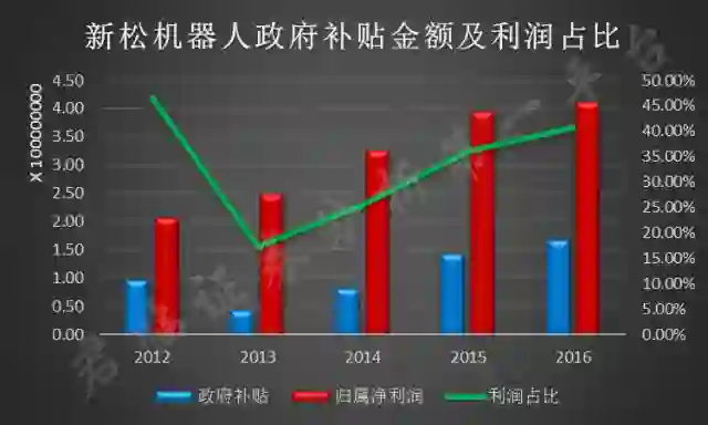 2016年,新松收到的政府补贴甚至占当年上市公司净利润的40%。