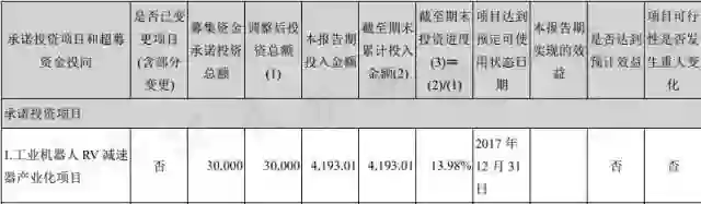 在2016年的年报中,9万套工业机器人关节减速器改造项目完成进度,仅有60%。