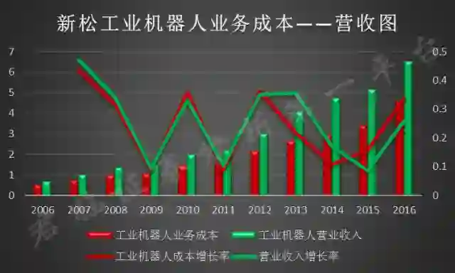 从2011年开始,新松的营收增速开始下滑,2015年实现营业收入16.9亿元,营收同比增长仅10.62%;