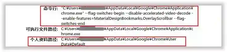 命令行。以我的显示信息为例子:"C:\Users\XX\AppData\Local\Google\Chrome\Application\chrome.exe" --flag-switches-begin --disable-accelerated-video-decode --enable-features=MaterialDesignBookmarks,OverlayScrollbar --flag-switches-end,引号部分为 Chrome 本地安装的目标位置,引号后面的内容则显示用户在功能特性界面自定义修改过的内容,比如我开启了 Material Design 风格的书签页面、自定义修改了浏览器本身的滚动条样式表现。