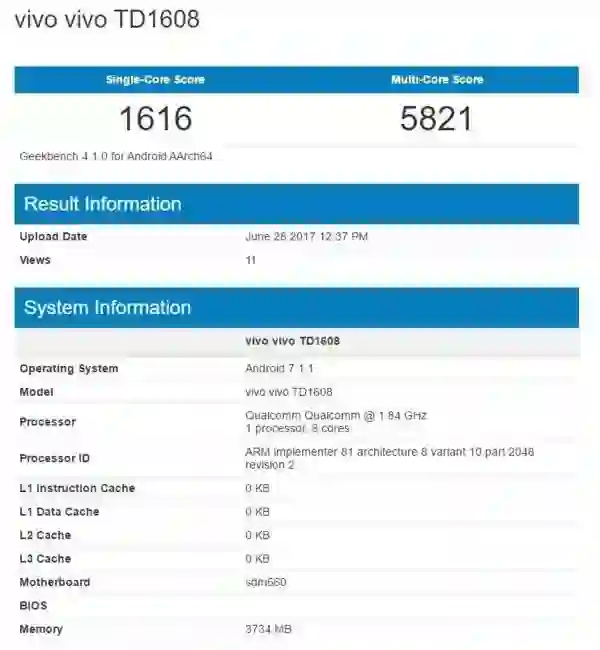 首先,vivo X9s 将搭载高通骁龙 653 处理器,而近日 Geekbench 曝光了搭载骁龙 660 处理器的 vivo 新品。