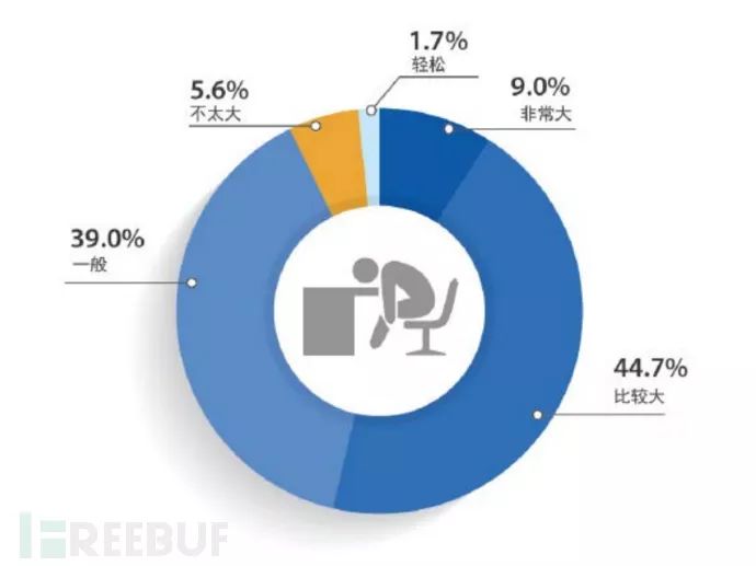 信息安全从业人员普遍感觉压力较大,认为工作轻松的人群仅占1.7%。政府机关事业单位、金融行业以及在管理岗位任职的人群压力感受更大。人员队伍由于长期供不应求,现有的从业人员队伍需要承担与自身规模和能力不相匹配的任务量级,加之安全保障岗位须承担较大责任,使得信息安全从业人员普遍感觉压力较大。尽管如此,从业人员职业满意度较高的人员占比仍显著高于满意度较低人群,表明从业人员对信息安全职业发展总体看好并持正向态度。