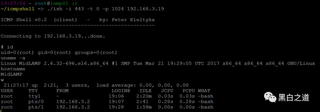 MidLAMP ip: 192.168.3.19 为目标linux机器,即icmp跳板机