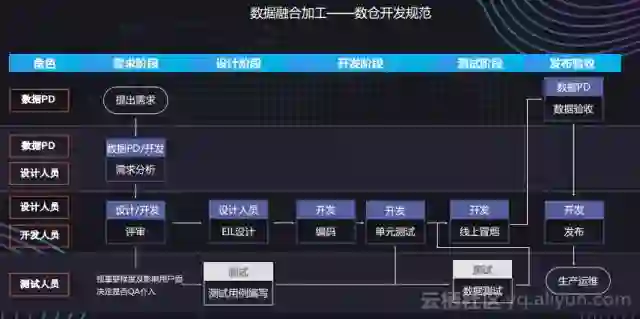 在数仓上的开发规范如图,从日志数据、用户基本信息数据等里面去挖掘出价值信息,然后涉及到数据开发人员做一些ETL的设计,包括我们的一些开发编码、设置,将任务提交到线上,在线上我们会遇到过去的一些数据运维工作,这些运维工作是不是可以在Dataworks里面去完成?下面我们一起来了解操作细节。