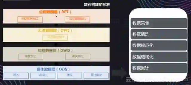 做数仓要进行数仓分层,底层是ODS层,通常情况下将原始的数据先采集到MaxCompute上来,对一些非结构化数据进行一定的结构化,包括一些数据的规范化, DWD层有我们的一些明细数据,我们要在这些数据之间能够产生一些价值,做一些数据清洁工作、数据交换工作,将数据进行打包,再向上我们要根据数据去做一些公共指标加工和应用指标加工,比如PVUV的访问、设备的访问等等。