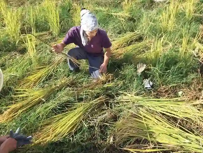 ▲在稻田里忙碌的六。稻子收割后要晾晒几天,那是它们接受光和热的最后时日。