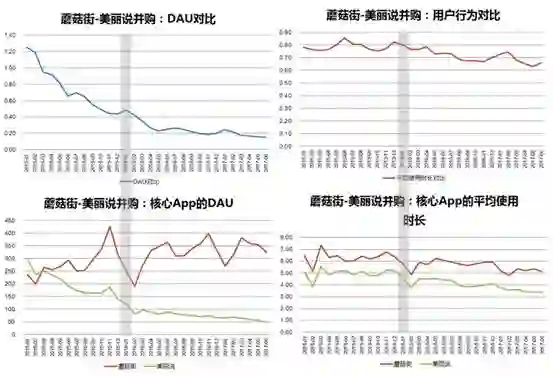 (对比为整合中的附属方数据比上主导方数据,即美丽说数据/蘑菇街数据)