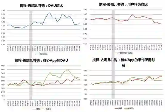 (对比为整合中的附属方数据比上主导方数据,即去哪儿数据/携程数据)