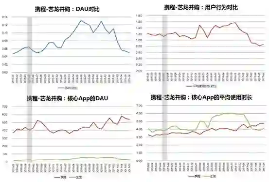 (对比为整合中的附属方数据比上主导方数据,即艺龙数据/携程数据)