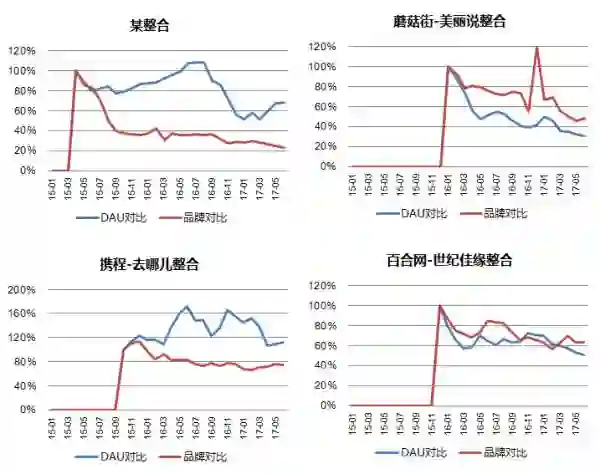 本文的核心在于用数据的方式完成如下盘点:各家互联网公司在完成兼并收购之后,如何处理两个产品和品牌之间的关系以及如何寻找协同。重点使用两大类指标:
