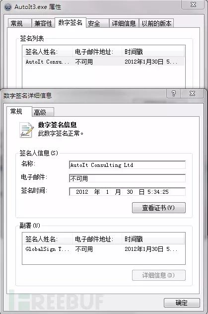 大东:别急~AutoIt3.exe 是 AutoIt 脚本解释器,它带有正规数字签名。真正的病毒体其实是 googleupdate.a3x。