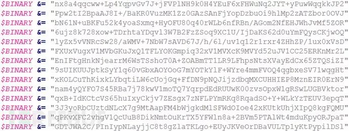 大东:代码中间1582行是在拼一个很大的变量,其内容用 base64 编码过。