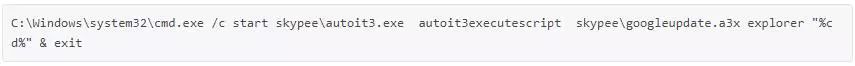 大东:样本执行时,依靠 AutoIt3.exe 调用 googleupdate.a3x 脚本,以此执行其中的恶意代码。