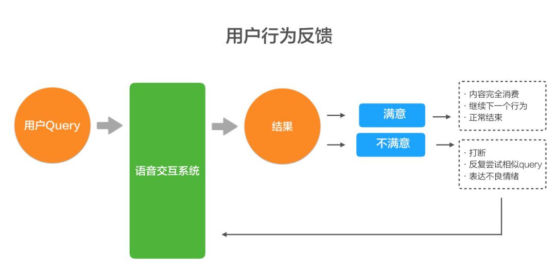 现在用户对结果的满意和不满意,在搜索里面是非常直接的。我跳过这个结果,可能就表示对这个结果就不喜欢,但在语音对话里,就像我们正常的对话里,我可能跟你聊了两句话不投机,但我可能还是比如说嬉皮笑脸的就走了,你可能都不知道我到底对你的话投不投机。